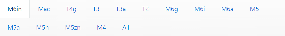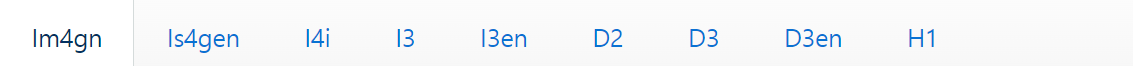 - 인스턴스 유형은 해당 제품군(class), 세대, 추가 기능 및 크기에 따라 이름이 지정됩니다.