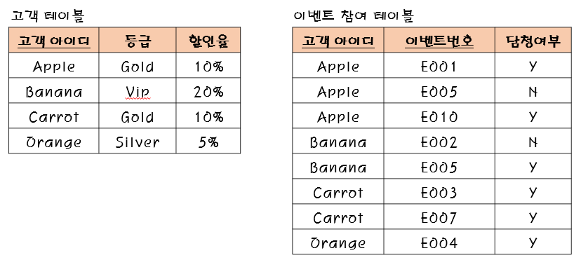 - 예를 들어, Orange 고객이 이벤트 참여를 취소한다면 이벤트 참여 테이블에서 관련 투플을 삭제해야 한다.